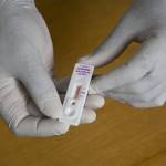 TANZANIA / BAGAMOYO / 13 JUNE 2007 Malaria rapid test being performed in the outpatient clinic at the Bagamoyo District Hospital. Photograph by PRASHANT PANJIAR